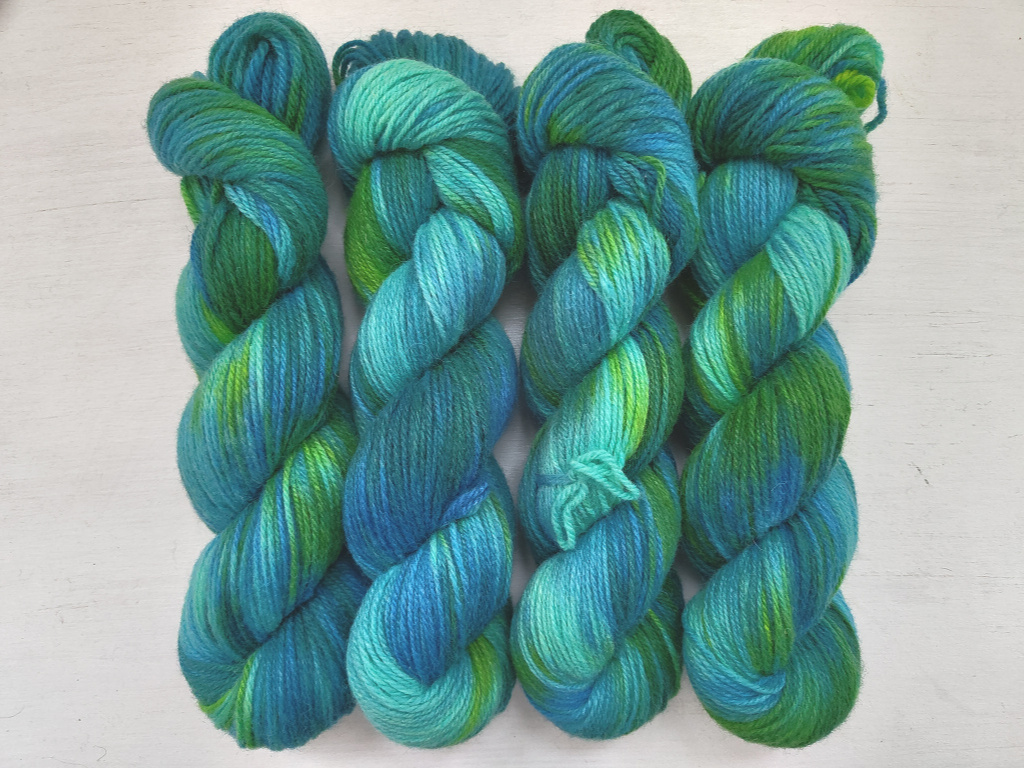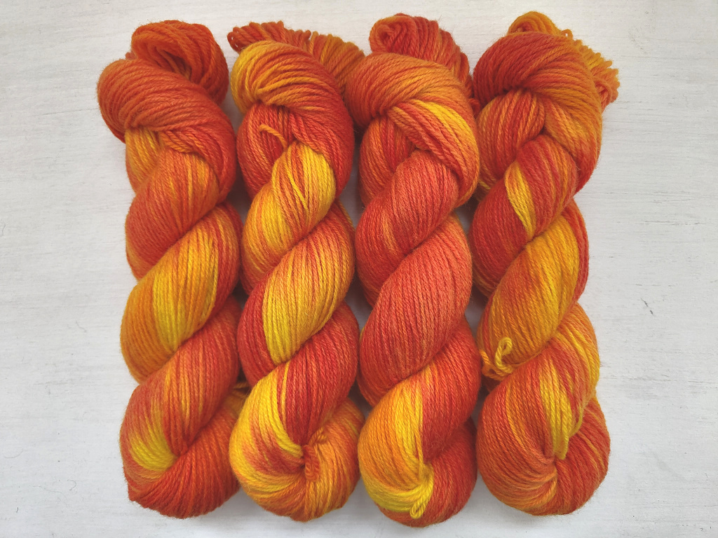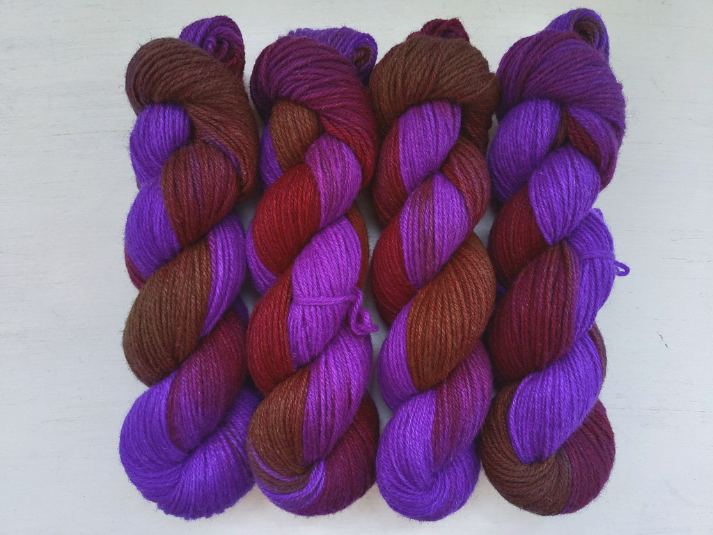 HAND DYED SOCK YARN. 70% Wool, 20% Polyamide, 10% Polyester (1 skein = 100 gr/233 m, 3.53 oz/254 yd, 3 ply)